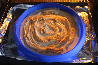 Hacemos un "caracol" con la primera y la ponemos en el centro de un molde que no sea desmoldable, si no se nos saldría el relleno.