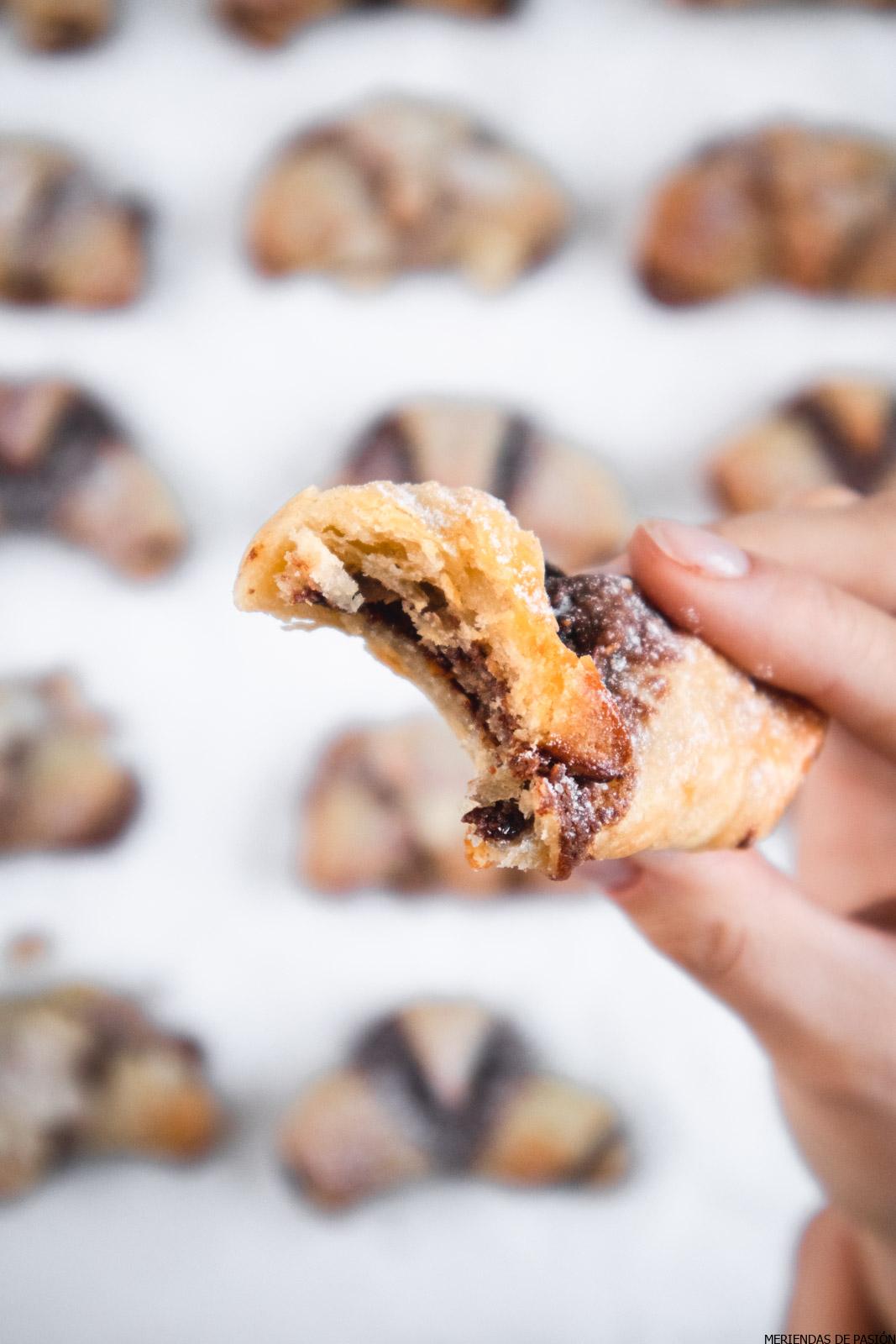 Si preferís rellenar vuestros rugelach de chocolate, un buen praliné de chocolate y avellanas es genial para ello, y si les queréis añadir pepitas de chocolate en el relleno y almendra o avellana triunfaréis.