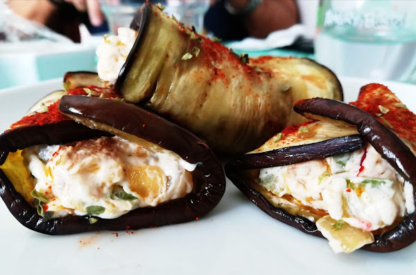 Cortamos las berenjenas a lo largo en linchas finas y las doramos en la plancha.