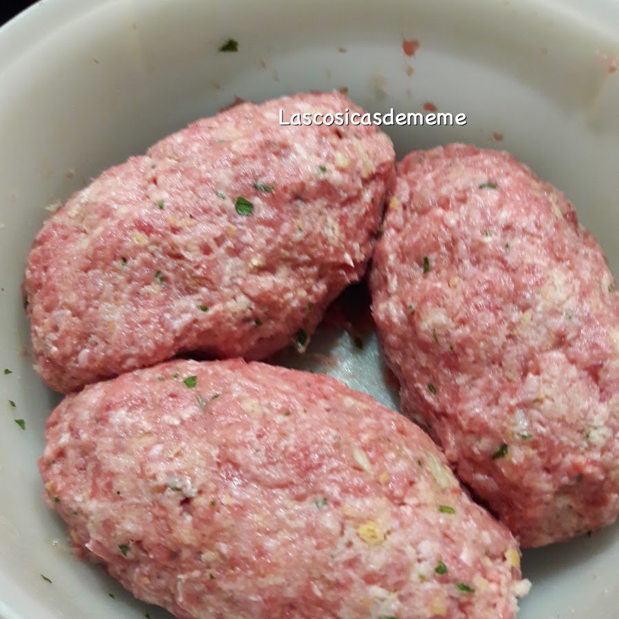 3 rebanadas de pan, remojadas con leche, muy escurrido, si están muy blandos añadir una cucharada de pan rallado
