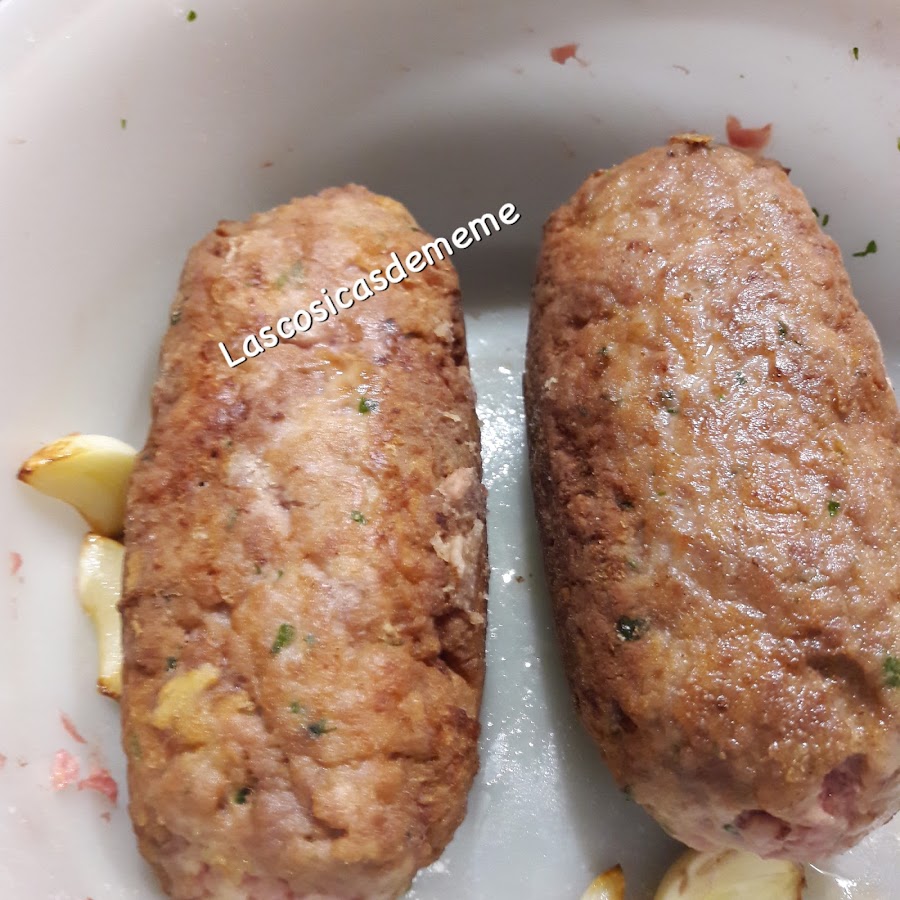 Comenzamos adobando la carne, la ponemos en un bol, añadimos las especias, el jamón, los huevos y el pan escurrido, la cucharada de vino, mezclamos muy bien.