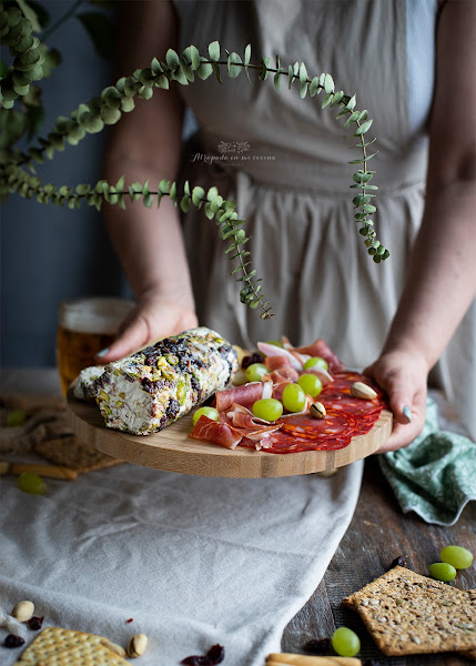 Por fin ha llegado el verano, la mejor época del año para la gran mayoría de los mortales. Una época ideal para compartir momentos alrededor de una mesa. Por eso hoy os traigo una propuesta ideal para preparar cuando tengamos invitados en casa. Se trata de un rulo de queso, pistachos, panceta y arándanos deshidratados. Es una idea que he visto en varios sitios de Internet y que me sedujo al instante. Es ideal para untar tostas o servirlo en rodajas acompañando nuestra tabla de queso y embutidos. En definitiva, una maravilla que, como siempre, es muy fácil de preparar.