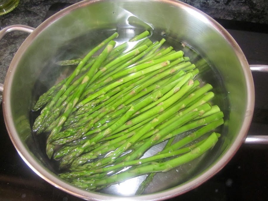 He escaldado unos minutos los espárragos,pero pueden ponerse en crudo si os gustan las verduras al dente,antes,desechamos los tallos duros.
