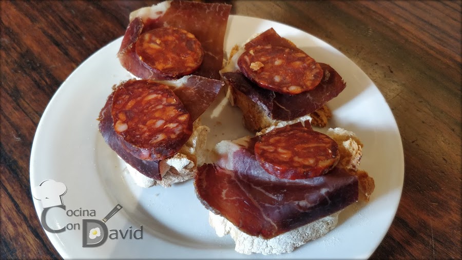 ENTREPEÑAS. Plaza de San Martín 1 (Barrio Húmedo). Tapa de embutido, en este caso fue de cecina y chorizo. El embutido lo fabrica de forma artesanal la empresa familiar con el mismo nombre.