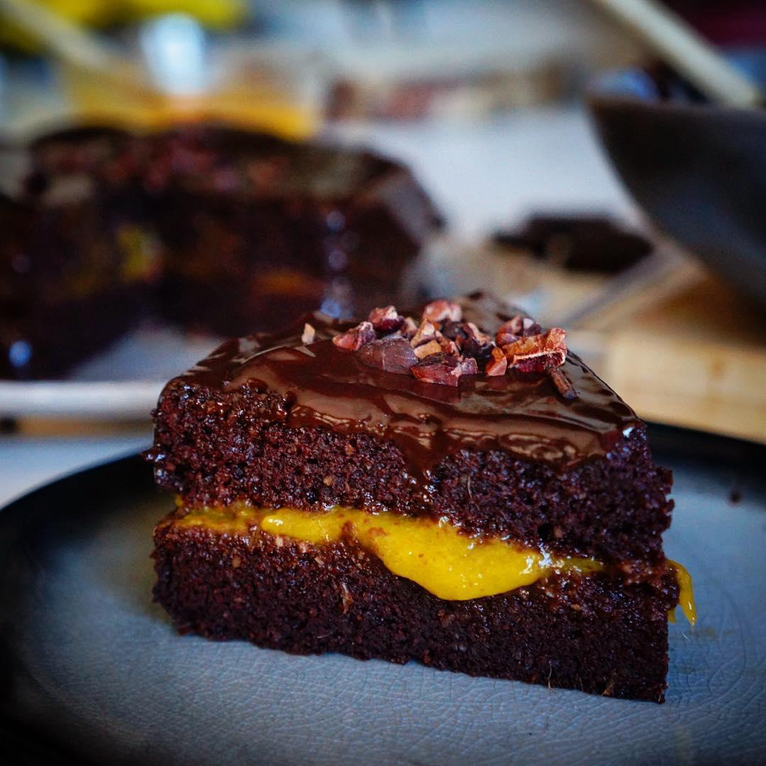 Brownie de mango y chocolate.