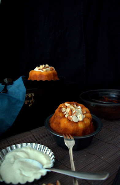 I love spices, so I decided to bake mini bundts with saffron and turmeric. I love the color and the flavour it got. Moreover, the syrup with lemon, cinnamon, cloves,... It was gorgeous!