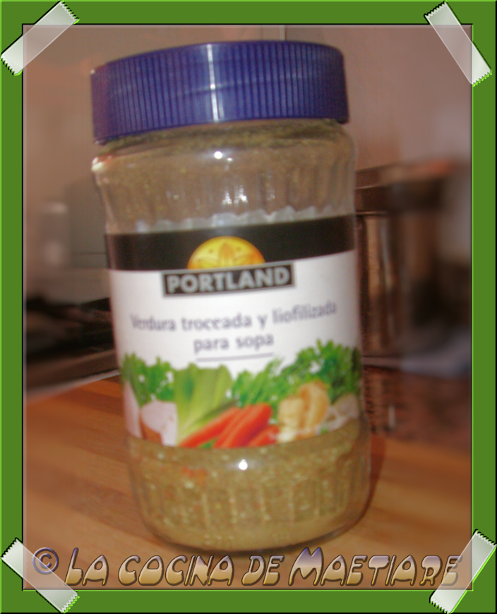 Este es el tarro de verdura troceada y liofilizada para sopa que he usado de la marca Portland