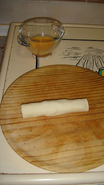 El rulito que sale, lo pintamos con huevo batido y le echamos semillas de sésamo encima, después cortamos pequeñas porciones y las ponemos separadas sobre una bandeja de horno.