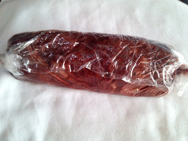 Luego verter la pasta en un trozo grande de papel film y enrollamos para darle la forma de salami y refrigeramos por dos o tres horas hasta que se ponga firme.