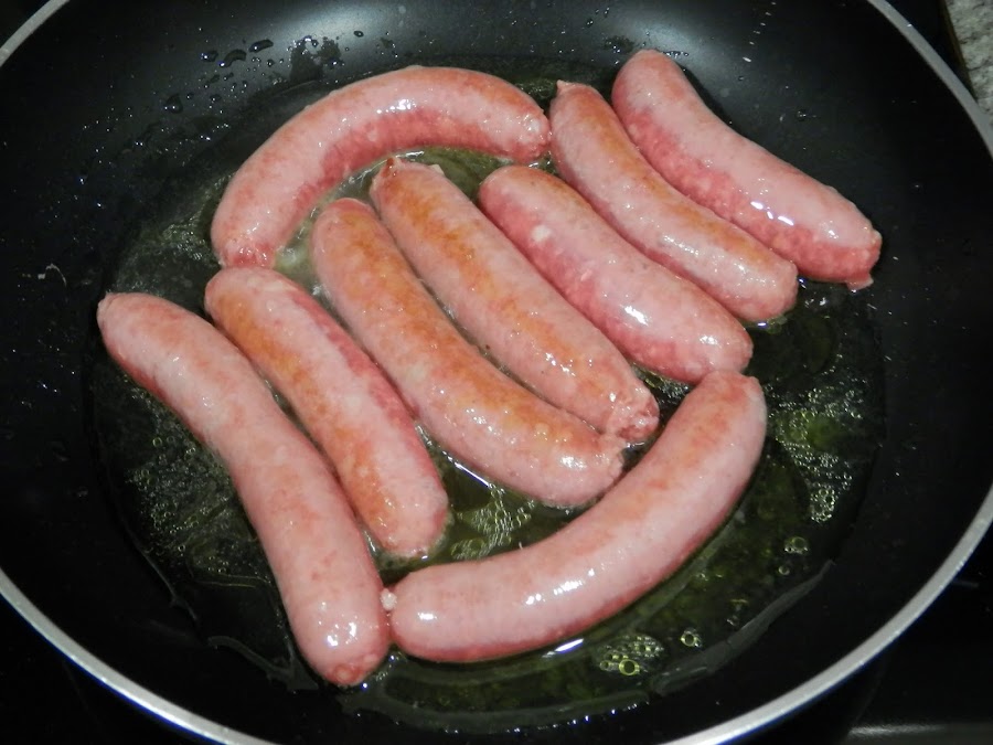 Cuando el aceite esté caliente,pondremos las salchichas.