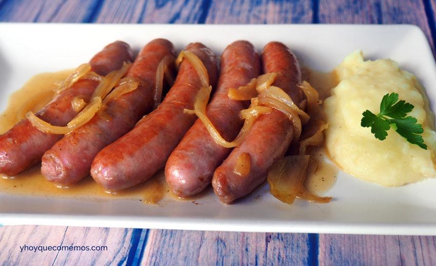 Las puedes acompañar con unas ricas patatas fritas, un puré de patata, arroz, verduras...lo que más te guste. Eso sí, que no te falte el pan para mojar bien en la salsa jejeje, yo con esta receta dejo el plato limpio ( y luego lo lavo, claro). También puedes probar a hacer esta receta con chistorras en vez de salchichas. Esta salsa queda muy rica también con vino Fino o Manzanilla. Pero como no tenía le eché el oloroso que es más dulce, pero puedes usar el que más te guste o el que tengas por casa. ¿Quieres formar parte del club de los comilones? Síguenos en nuestra página de Facebook y te mantendremos y te enviaremos todos los días nuestras nuevas recetas. Haz CLIC AQUÍ para ver las recetas.