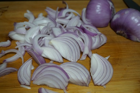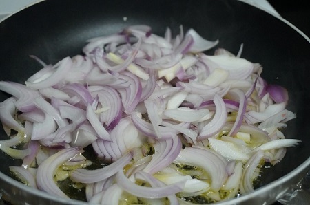 Empezaremos cortando la cebolla, la cortamos en juliana o en trozos más pequeños si os gusta así. Pelamos y cortamos el ajo. Ponemos una sartén con un buen chorro de aceite al fuego, cuando esté caliente añadimos la cebolla y el ajo,