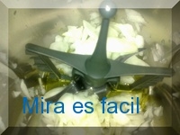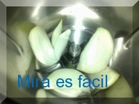 En el vaso de la thermomix, ponemos la cebolla cortada en cuartos.