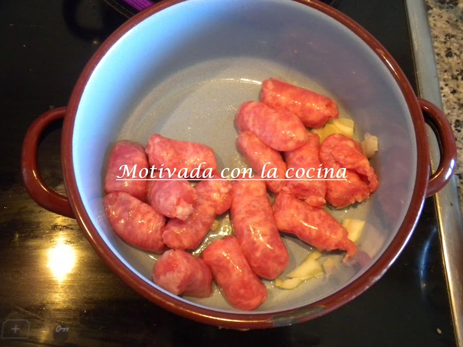 2. Se añaden los trocitos de salchicha hasta que se doren.
