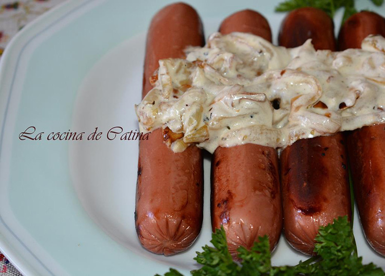 Esta cremosa salsa de cebolla puede servirse en una variedad de platos aparte de estas salchichas, pruébala también con unas hamburguesas, unos filetes de cerdo. También queda exquisita con cordero asado y con distintas verduras.
