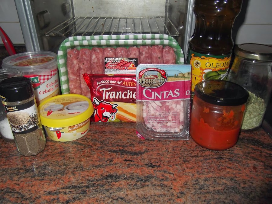 - 18 salchichas frescas de cerdo (pueden ser también de pollo)