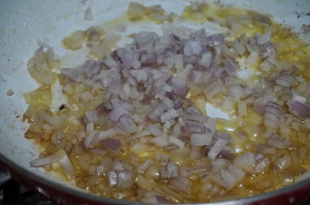 En esa misma sartén ponemos un poco más de aceite y echamos la cebolla picada, la dejaremos hasta que esté transparente.