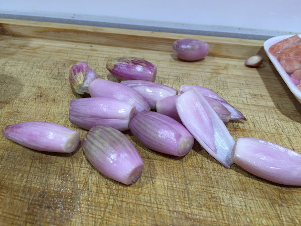 2. Pelamos las chalotas, les quitamos primera piel y las lavamos.