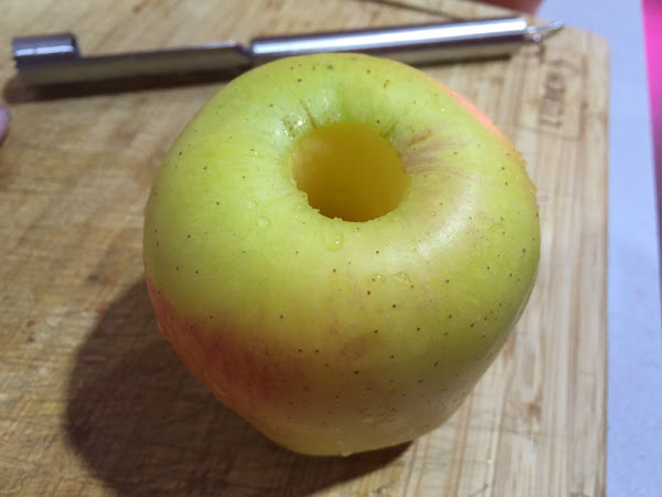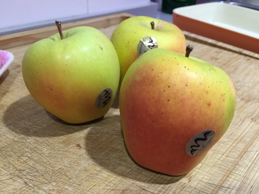 1. Precalentamos el horno a 180ºC. Lavamos y descorazonamos las manzanas. Para hacer al horno os recomiendo la manzana Golden, un tipo de manzana que mantiene la consistencia, y no es demasiado dulce ni ácida una vez asada. Cortamos cada manzana en 8 gajos.