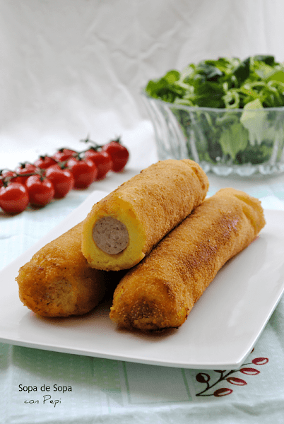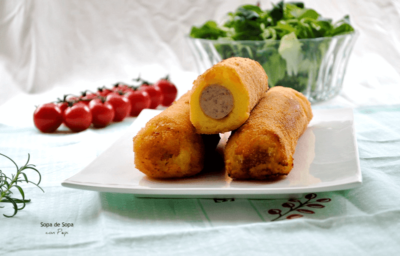 Salchichas envueltas en puré de patata