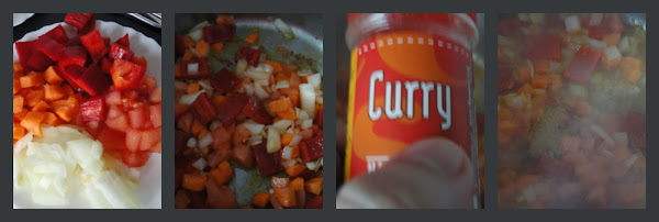 Pasado este tiempo, agregamos el curry, removemos rápido para que no se queme y dejamos cocer durante un minuto sin dejar de remover.