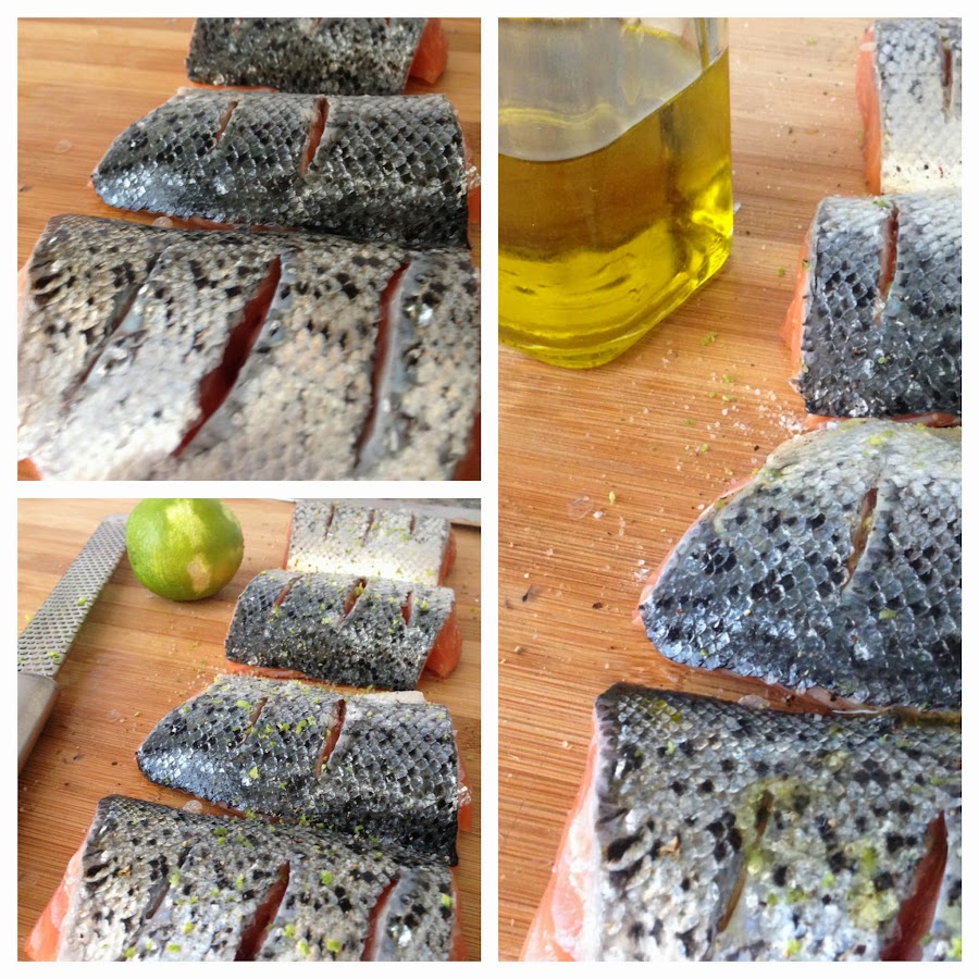 Haz unos cortes en la piel en los que añadirás sal, pimienta y ralladura de lima. Si os apetece podéis añadir más especias en estos cortes.