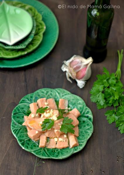 El otro día compré salmón para hacerlo en salazón y de repente se me ocurrió que podría quedar bien hecho en vinagre, como los boquerones. El resultado me ha encantado y me ha sorprendido, porque ha quedado más rico de lo que pensaba. Además metido en aceite dura una semana en el frigorífico sin problemas.