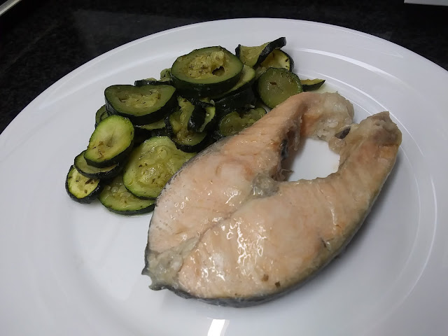 Ponemos el salmón con una pizca de sal en un plato. Tapamos con la tapa del micro y metemos de 3 a 5 minutos según el grosor. Veremos que está hecho porque cambia de color.