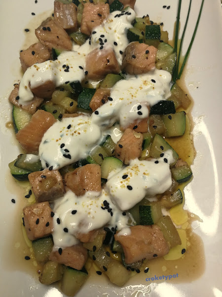 Es un plato muy sencillo, nutritivo que podéis adaptar para los niños, el calabacín y el salmón maridan muy bien, y con la crema queda espectacular.