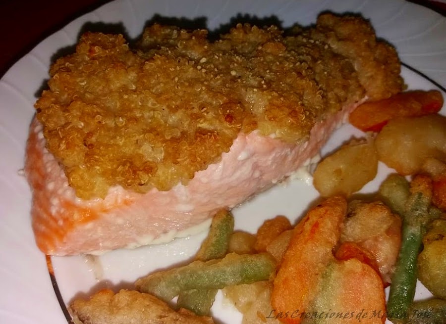 Nunca he probado la quinoa y tengo que decir que en esta receta me ha encantado, se queda crujiente y con el salmón hace un sabor espectacular. Al final de la receta os hablo de la quinoa. Espero que hagáis la receta y me contéis.