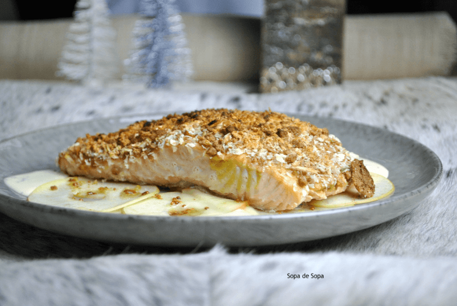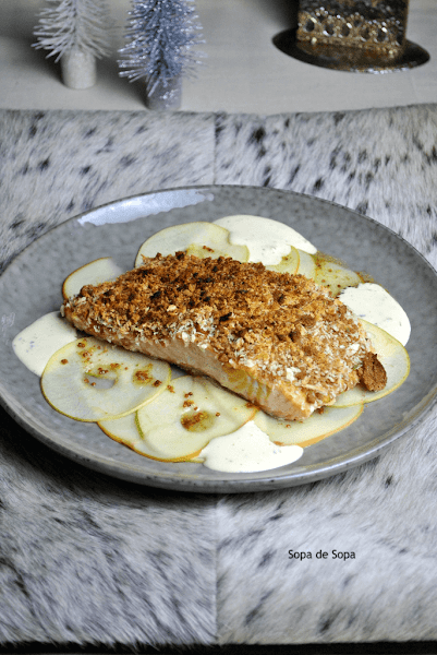 Reconozco que como española pero residiendo en Alemania desde hace muchos años, este país me ha hecho abrir el abanico gastronómico. Aquí las especias como el Spekulatius por ejemplo, no falta en Navidad. Y, justamente es la que lleva este salmón. Dándole ese sabor navideño inconfundible.