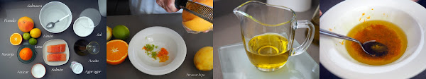 Más que una receta hemos elegido una técnica: la cocción al vacío, aplicada a unos lomos de salmón, aromatizados en todo el proceso con un festival de cítricos, en elaboraciones que han sido un valor añadido del proceso.