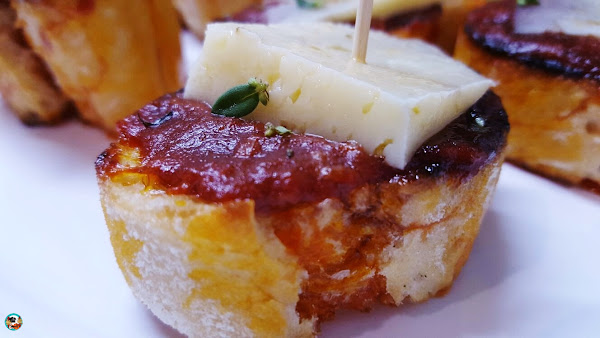 pinchos de queso con sobrasada y miel.