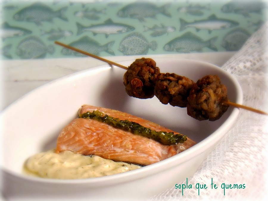 Preparamos primero la salsa, para ello hacemos una mayonesa y le añadimos eneldo muy picadito, o en su defecto eneldo seco. Reservamos en la nevera.