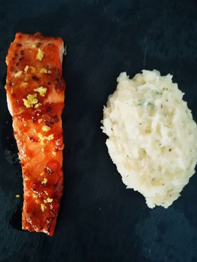 Precalentamos el horno a 200ºC. En una bandeja apta para horno, ponemos el salmón, le añadimos la salsa y horneamos unos 20 minutos.