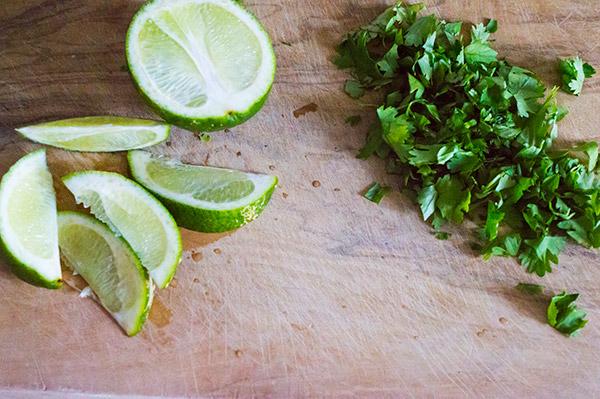 Picamos el cilantro y servimos por encima junto con las rodajas de lima por si alguien quiere añadir un poco mas de acidez!