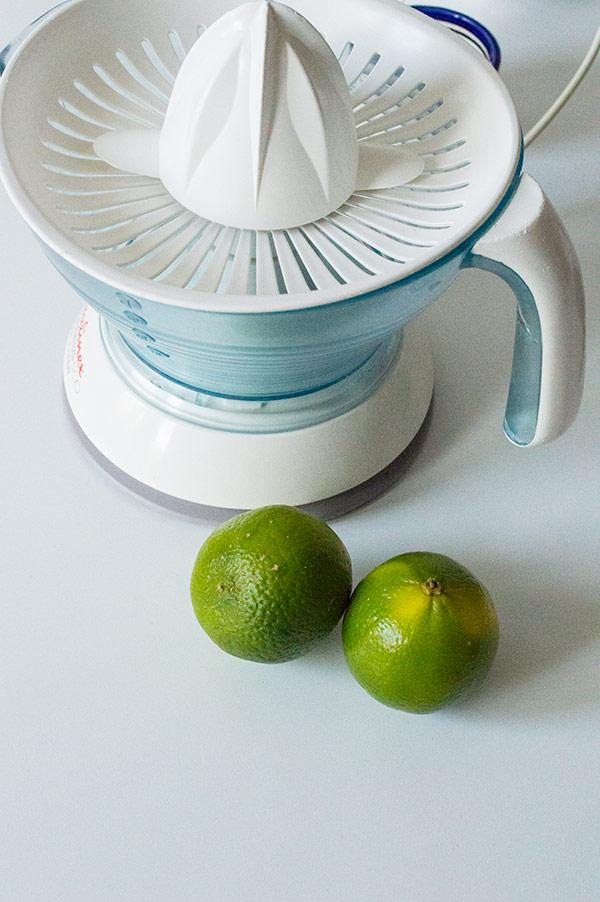 Hacemos el zumo de lima y media y reservamos la otra mitad para hacer una rodajas.
