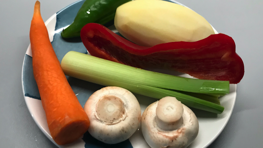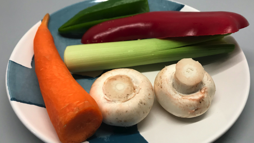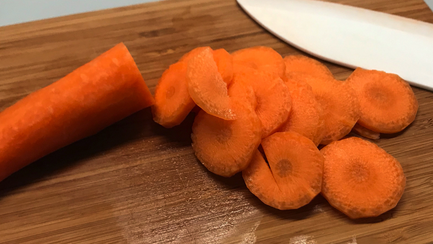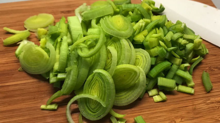 Pela y limpia el resto de verduras. Corta en rodajas finas.