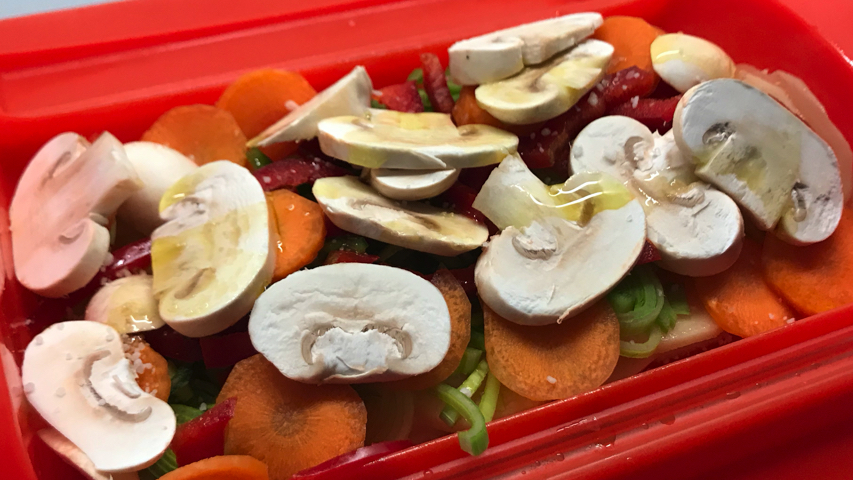 Si no tienes estuche de silicona apto para el microondas puedes usar cualquier recipiente apto que se pueda cerrar o taparlo con papel film.