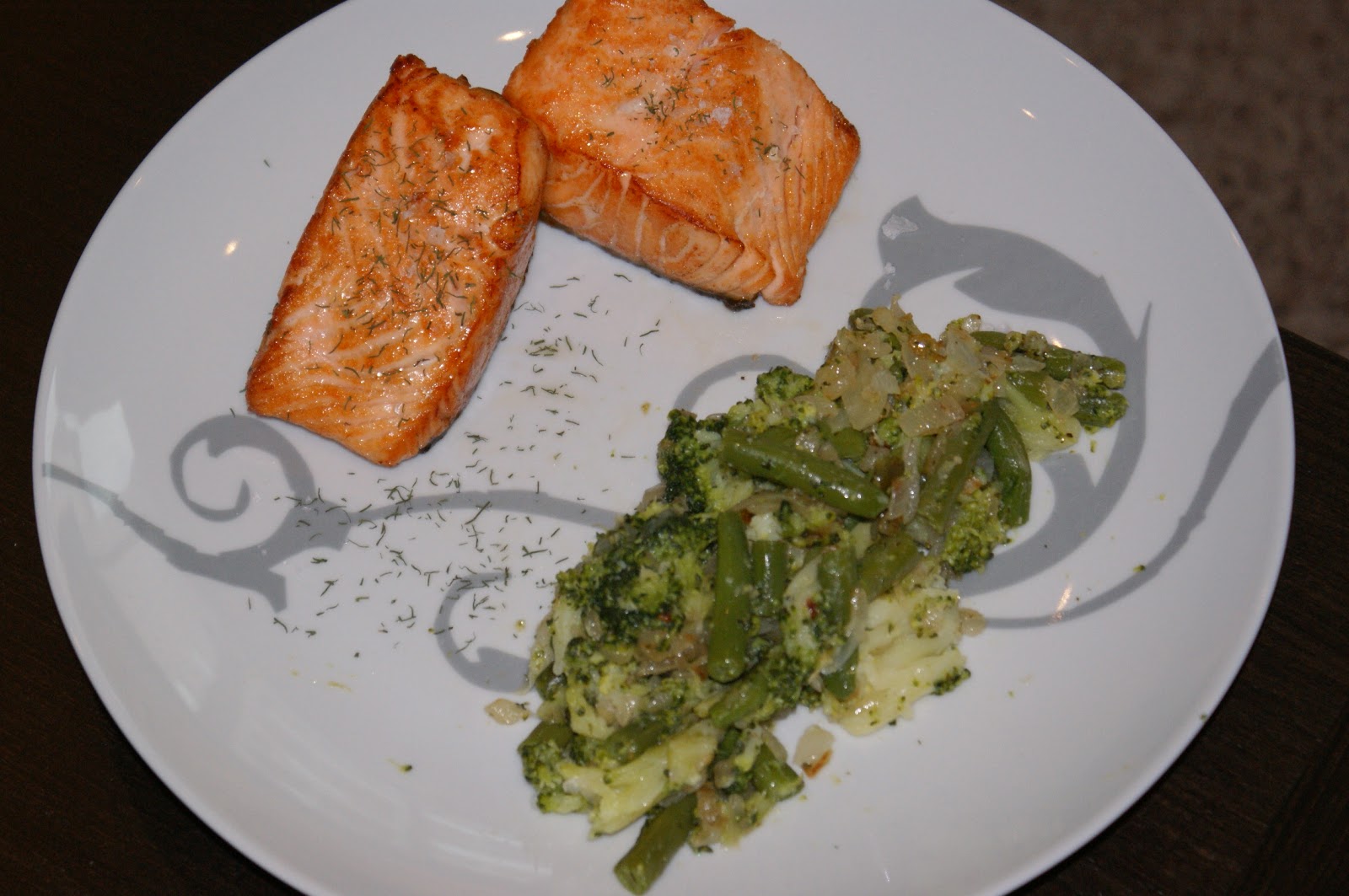 Mientras ponemos una plancha y hacemos los lomos de salmón. Cuando se ponga en el plato le añadimos romero.