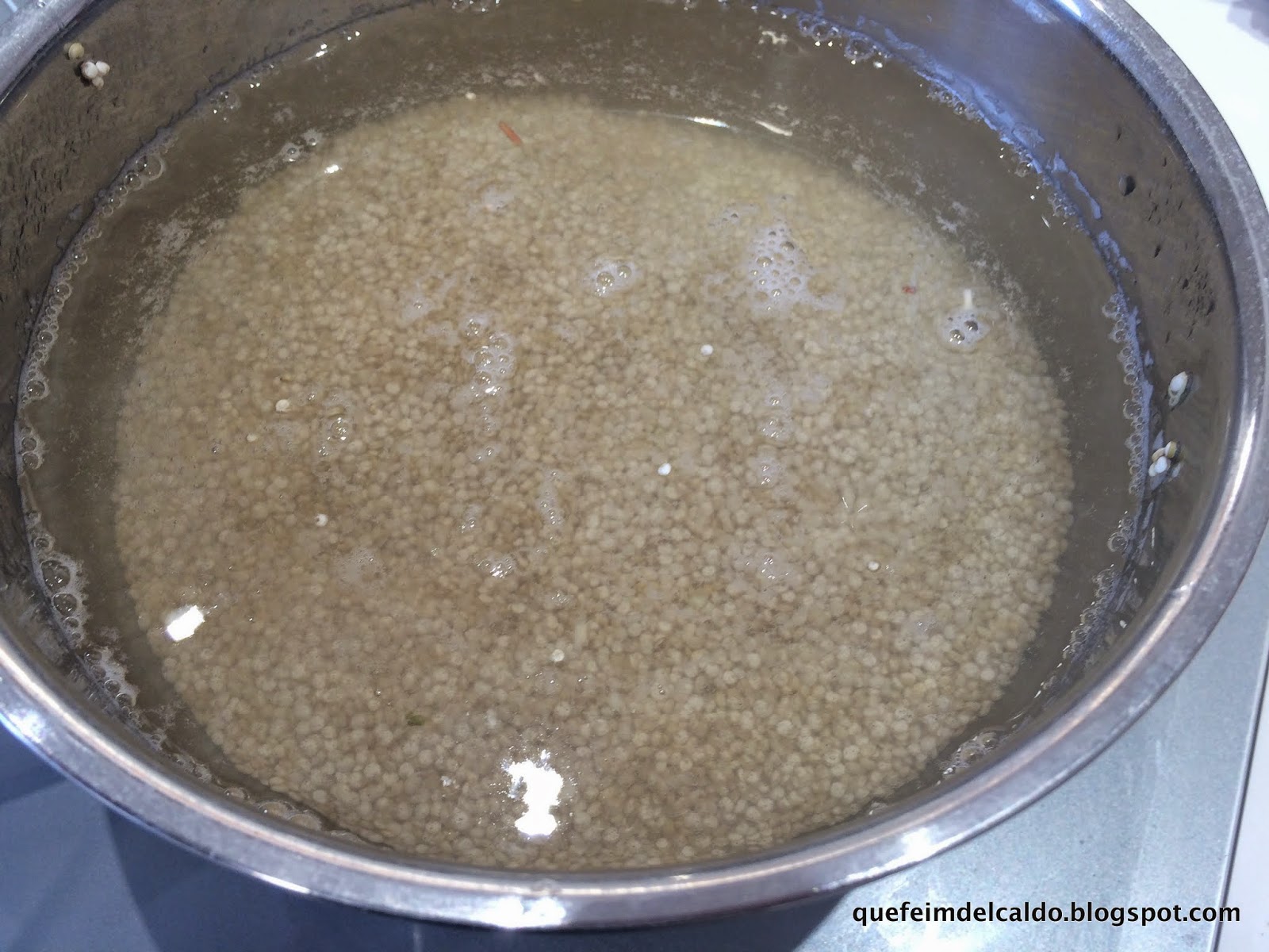 Mientras tanto cambiamos el agua a la quinoa y la ponemos a cocer durante 15 minutos.
