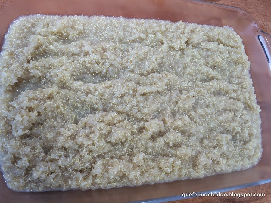 Una vez hervida la quinoa la extendemos sobre una fuente de horno para que se enfríe.