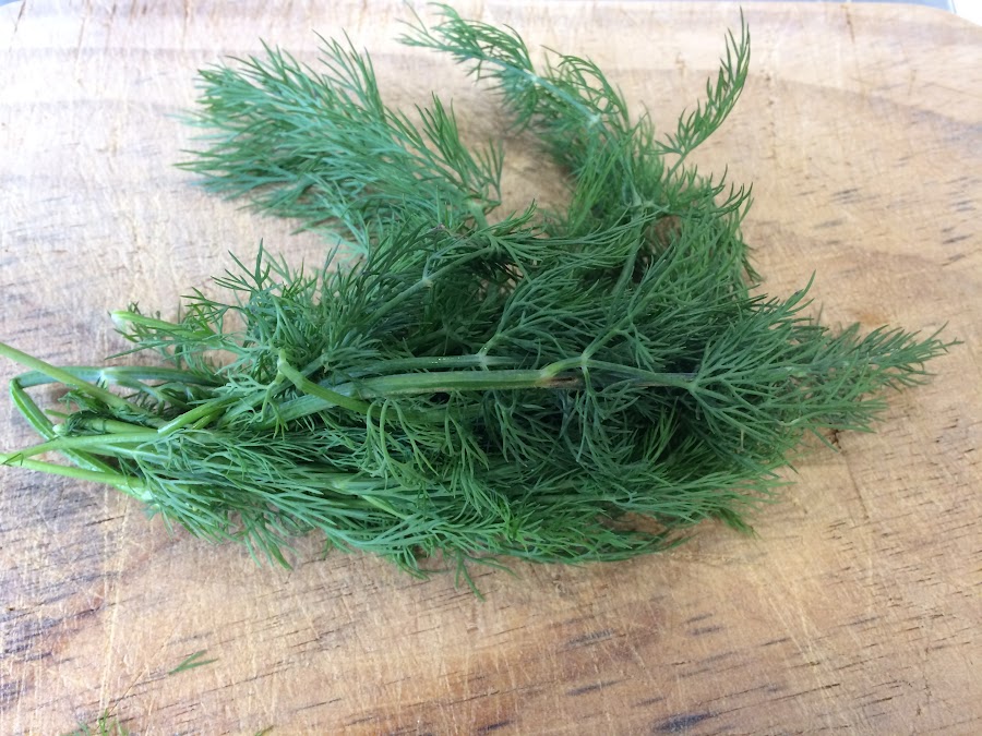 Lavamos el eneldo y le quitamos las ramas más gruesas.