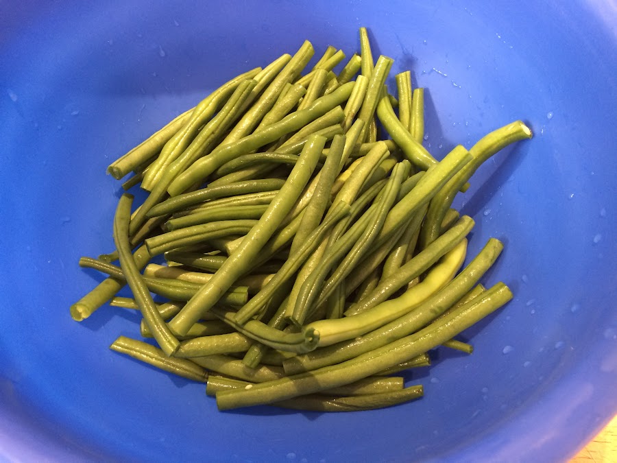 En primer lugar limpiamos las judías verdes, las despuntamos y las lavamos bien.