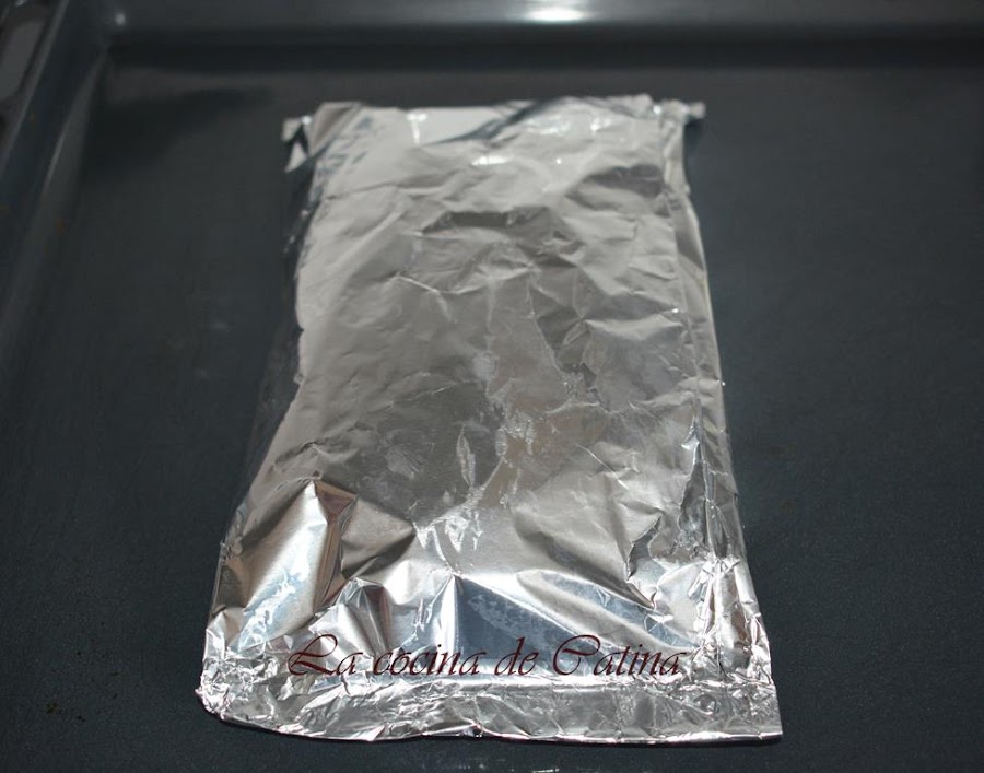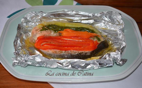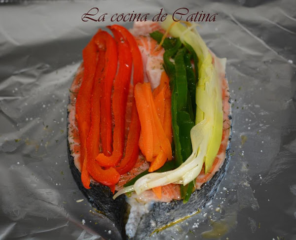 Cubrimos con las verduras salteadas y cerramos las láminas como si fuese un paquete.