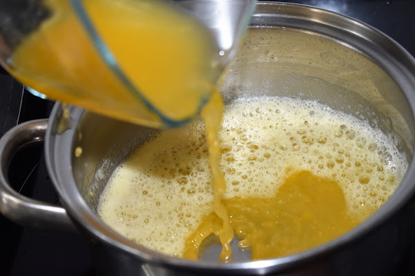 Mientras hacemos el salmón a la plancha por un lado, en otro fuego preparamos la salsa.