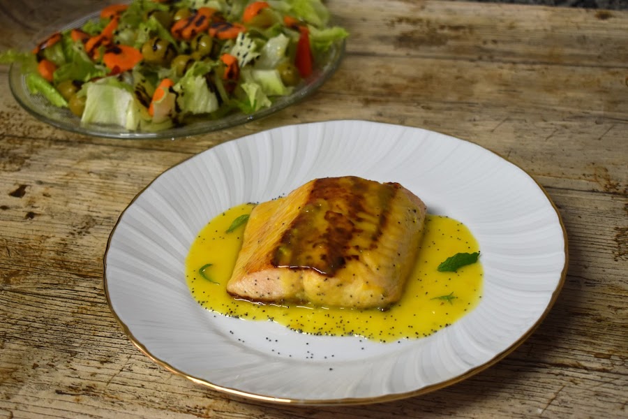 Si te gusta el salmón y te gusta la naranja este plato bien sencillo te va a encantar, ah y la salsita esta para mojar pan, ya os lo aviso!!