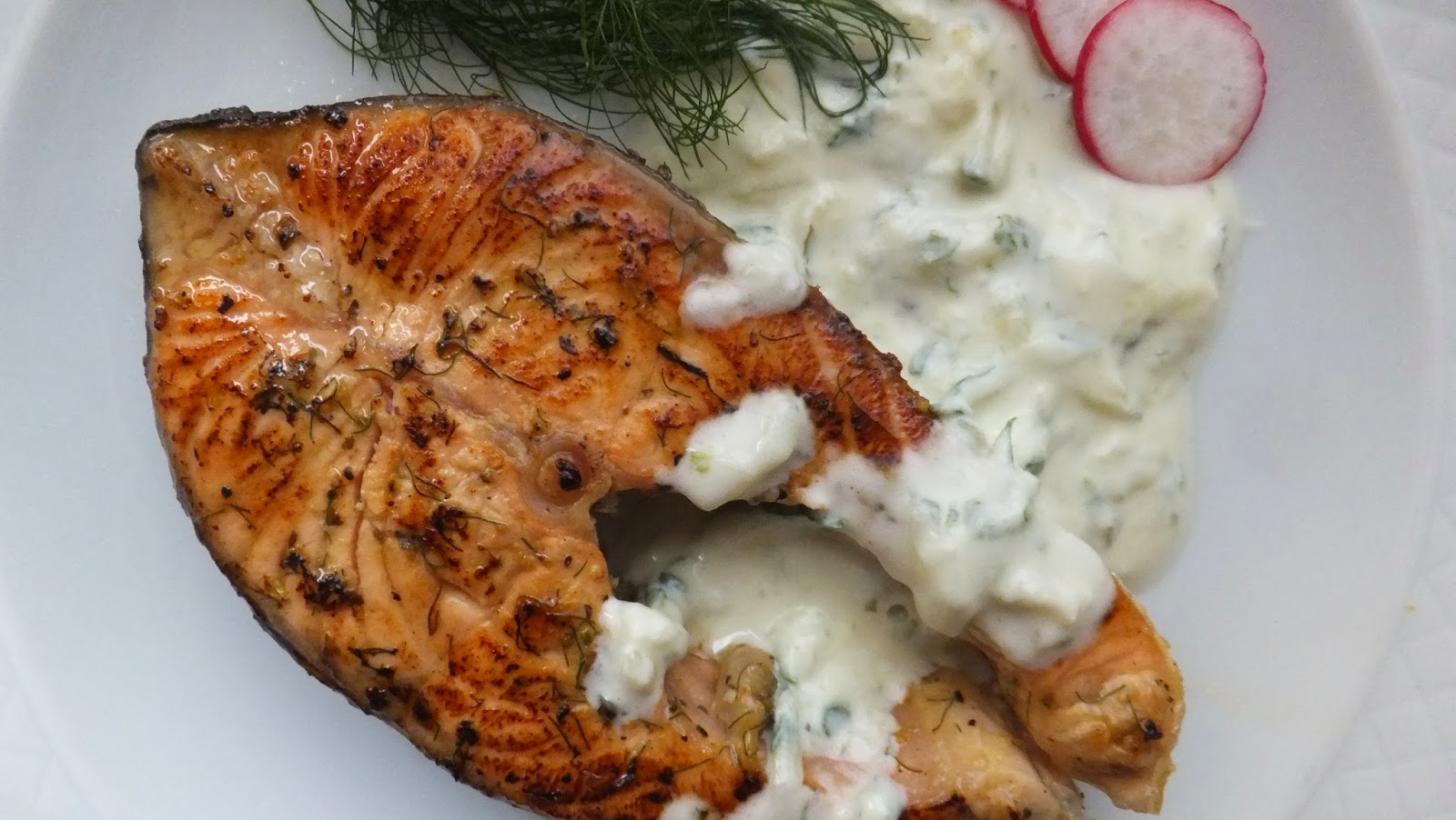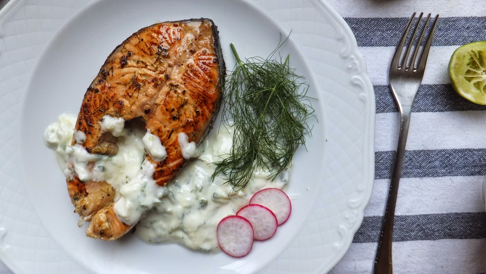 {RECETA DE SALMÓN MARINADO A LA GRIEGA CON SALSA TZATZIKI}