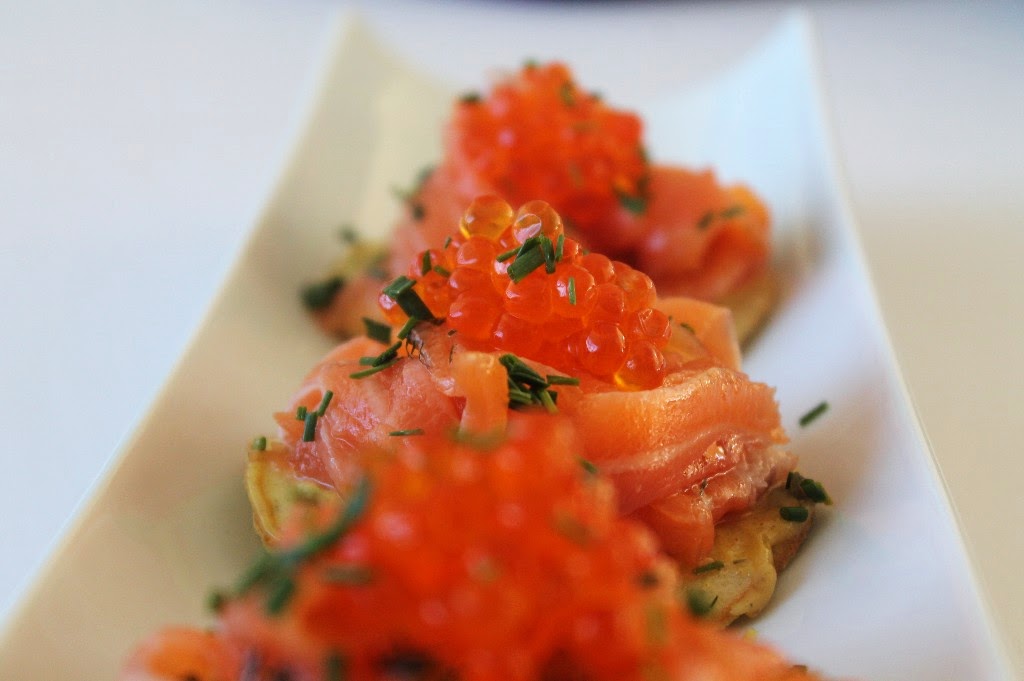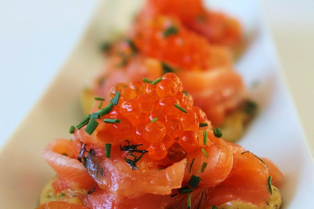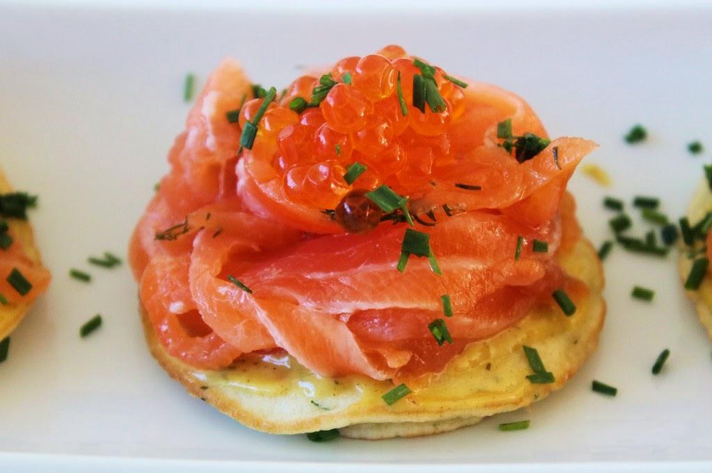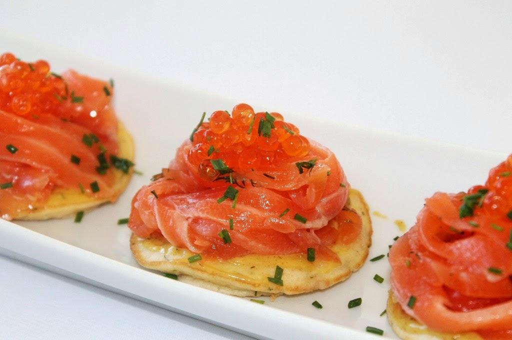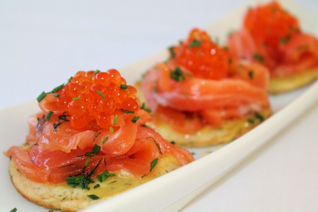 La manera de servir este exquisito manjar que podemos tomarlo como entrante, como aperitivo o servirlo en un coctel, es sobre tostas con salsa de eneldo o unos blinis que son una especie de tortitas que van ideales para ello. Hoy os doy la receta de unos blinis estupendos para acompañarlo pero aromatizados con eneldo y con un puntito de picante gracias a la incorporación de una puntita de pasta de rábano picante que encontraréis en cualquier supermercado.