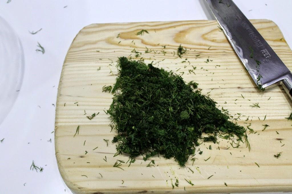 Una vez seco espolvorearlo con eneldo del que hemos reservado entero o mejor si es picado para que cuando lo cortéis se vea un poco de eneldo.